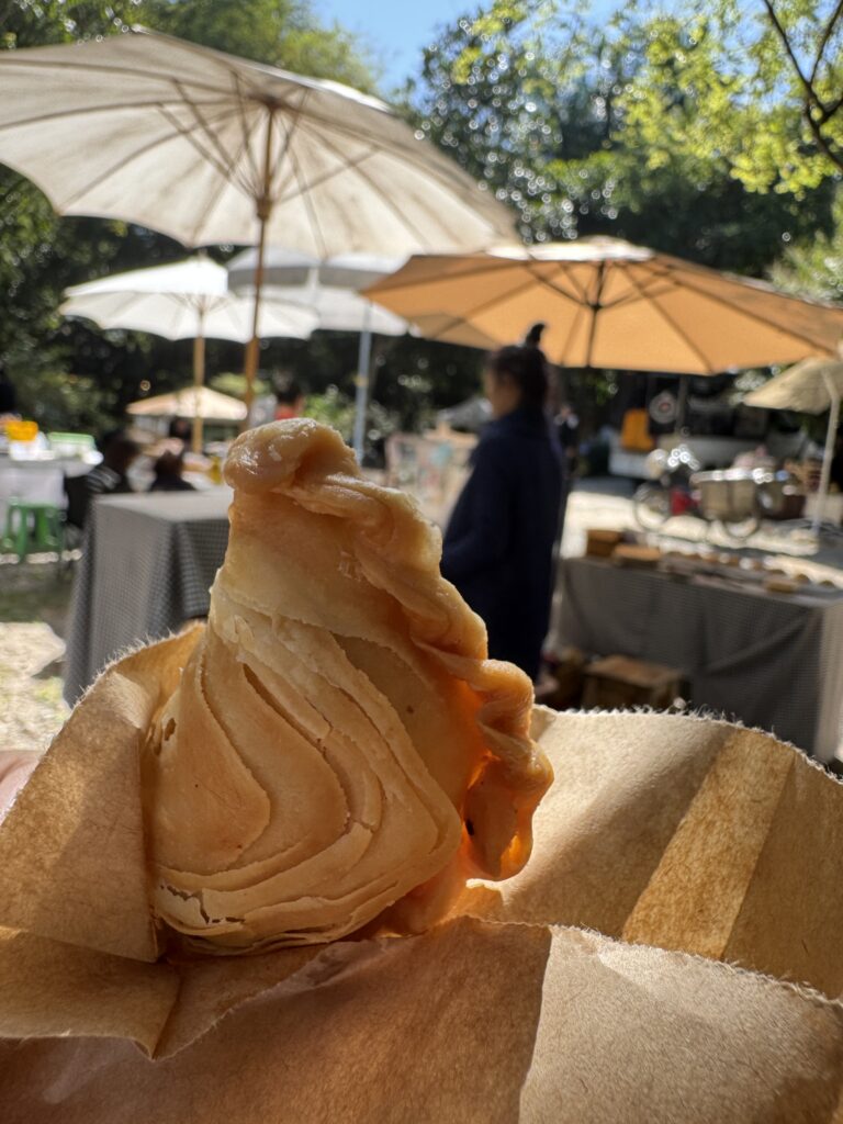 このマーケットの代名詞とも言えるのが、大量に焼き上げられるクロワッサンやキッシュ、デニッシュなどのパンです。