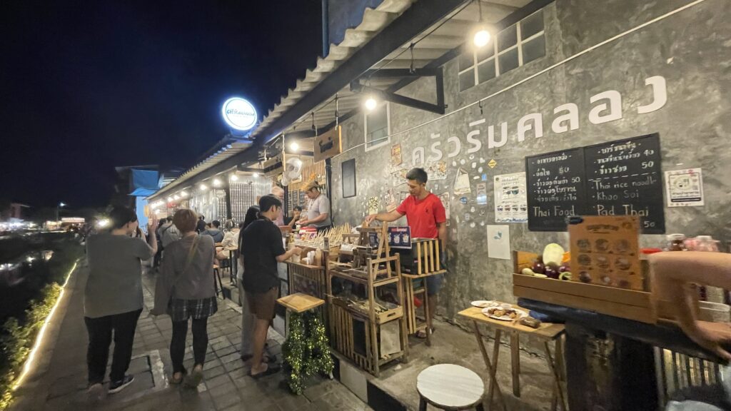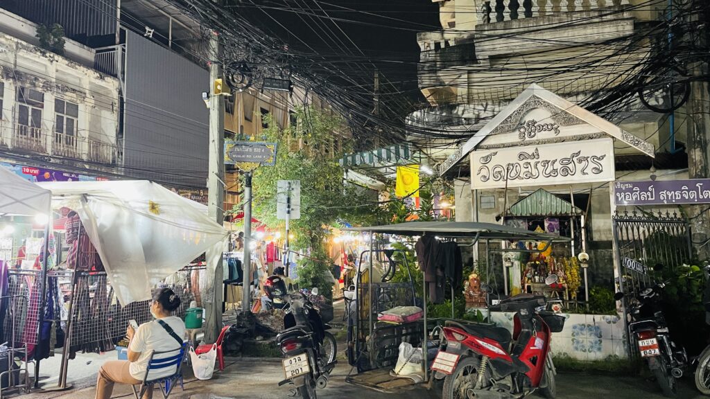 立ち並ぶ屋台の他に、フードコートに変身しているワット・パン・オン (Wat Phan On / วัดพันอ้น / Wát Phan On) などの寺院の境内でも食事ができ、趣のある雰囲気の中で楽しめます。