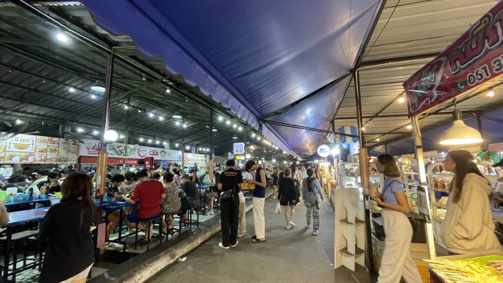 少し奥まった「カラレ・ナイトバザール」は、フードコートやタイの伝統舞踊ステージがあり、休憩にぴったり。ムエタイ観戦もできますよ!