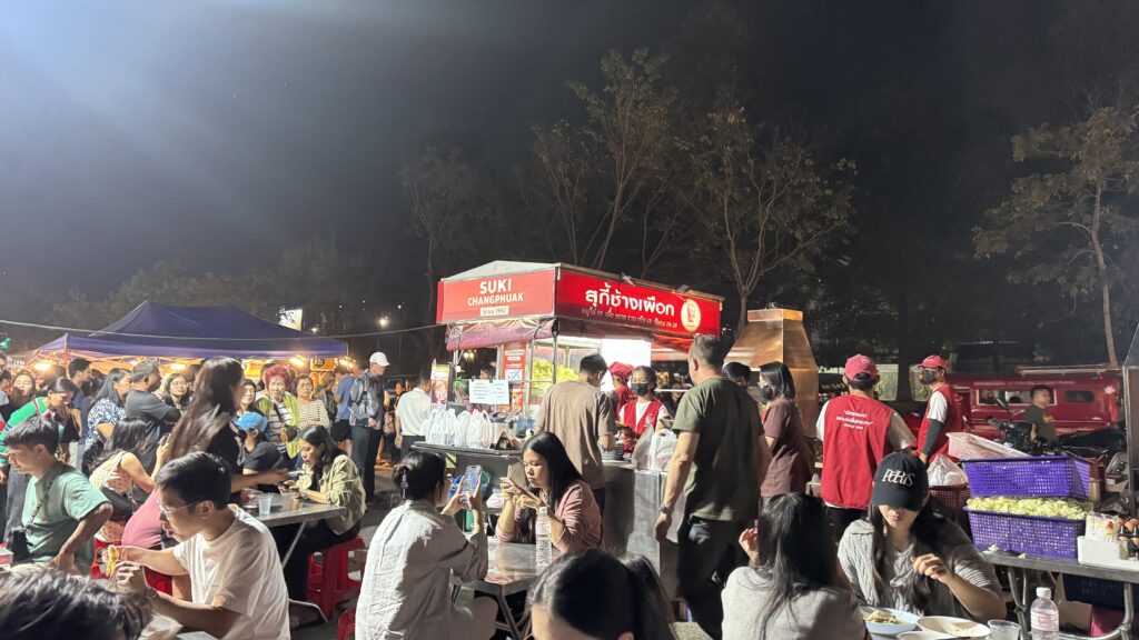 毎晩開催されており、チャンクラン通り (Chang Klan Road / ถนนช้างคลาน / Thà-nǒn Cháang Khlaan) 沿いに無数の露店がひしめき合っています。